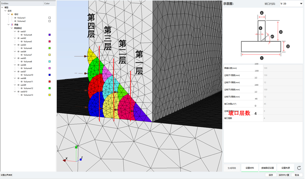 · 多层多道焊复杂接头一键参数化建模,与传统仿真流程相比减少了90%接头建模时间。